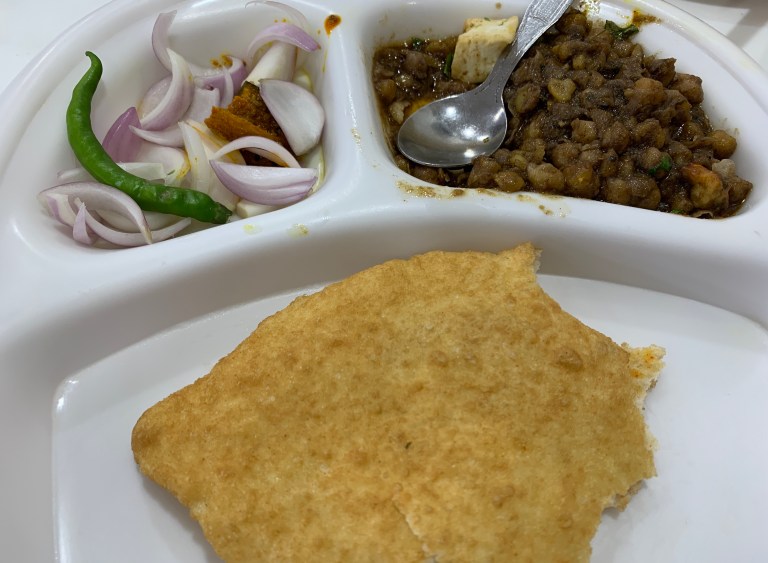 I had last been here when I was a child. The place has changed much since. It was swanky. Looked like it had had a face lift from the time I had been there. Much like Sita Ram in Pahar Ganj. We ordered two half plates for Rs 90 each. And even though I was a tad displeased with the fish like shape of the bhatura, the chhole and bhature were both good. No complaints at all. A full plate is for Rs 125. A bit expensive but then you sit in a neat and clean place with waiter service. Also, I was assured that the chhole bhature were made in desi ghee. But there were no signs anywhere in the shop indicating that. Normally, most places which use only desi ghee advertise that proudly. Not so here. So I still have a question mark on that one. The owner said it says so on his calling card. It did say specialists in desi ghee preparations but again nothing in the shop to indicate that.